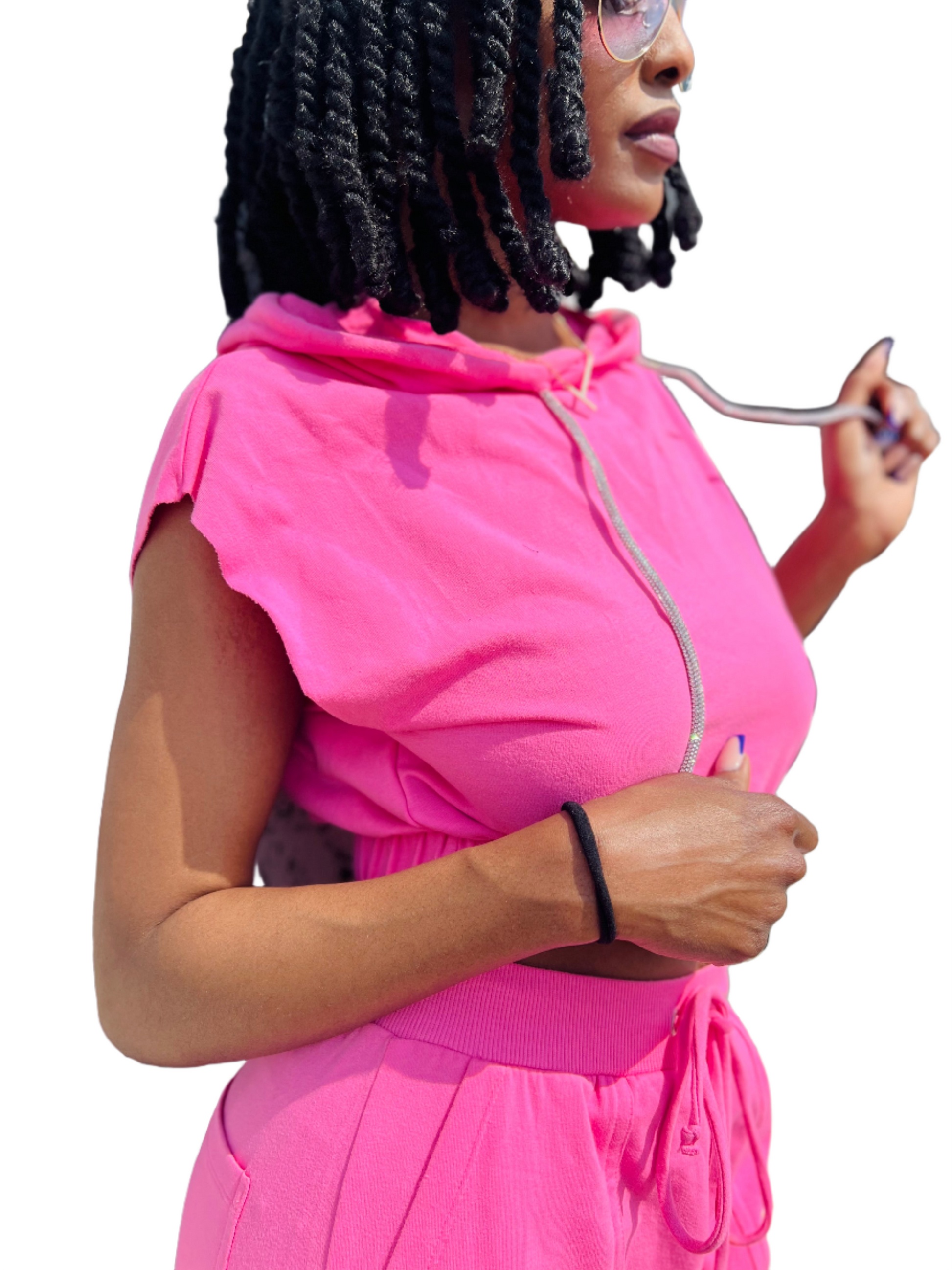 Who doesn’t love a good set! Just grab your shoes and go! This jogger set features a sleeveless hoodie with elastic waistband and rhinestone strings paired with jogger pants with side slit with a tie, front and back pockets and elastic bottom and waist for extra comfort! Rock with your tennis shoes or heels but definitely a must!