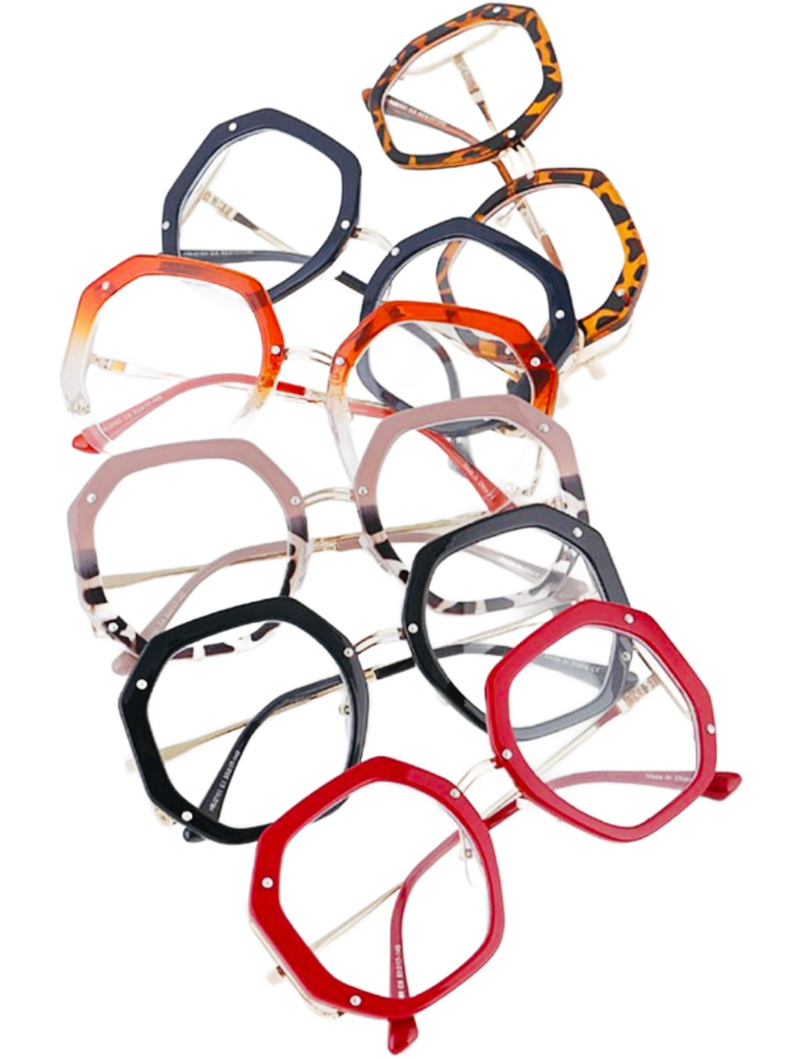 These retro geometric optical glasses are an eye-catching statement piece. The octagonal shape adds a touch of modern edge to any outfit. Capture all the attention and make your style stand out with these beautiful glasses. Great accessory for any look!